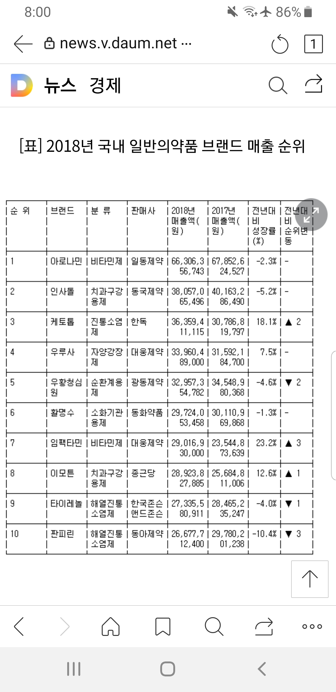 아로나민이 1위네요~