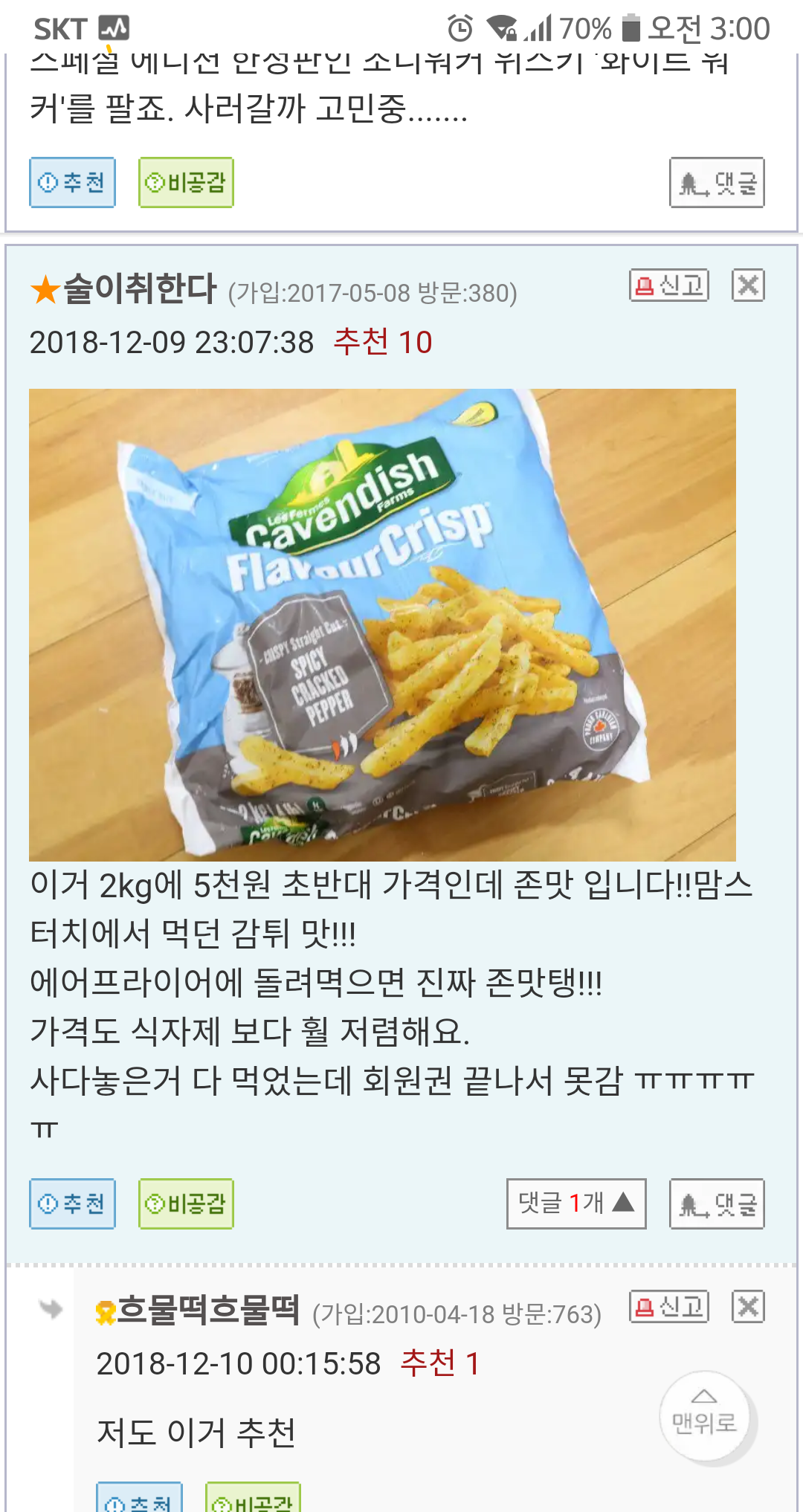 감자튀김은 사먹는 거였지 이렇게 쉽고 편하게 해먹을 생각은 못했는데.. 문명이 좋네요 ㅋㅋㅌ | ||