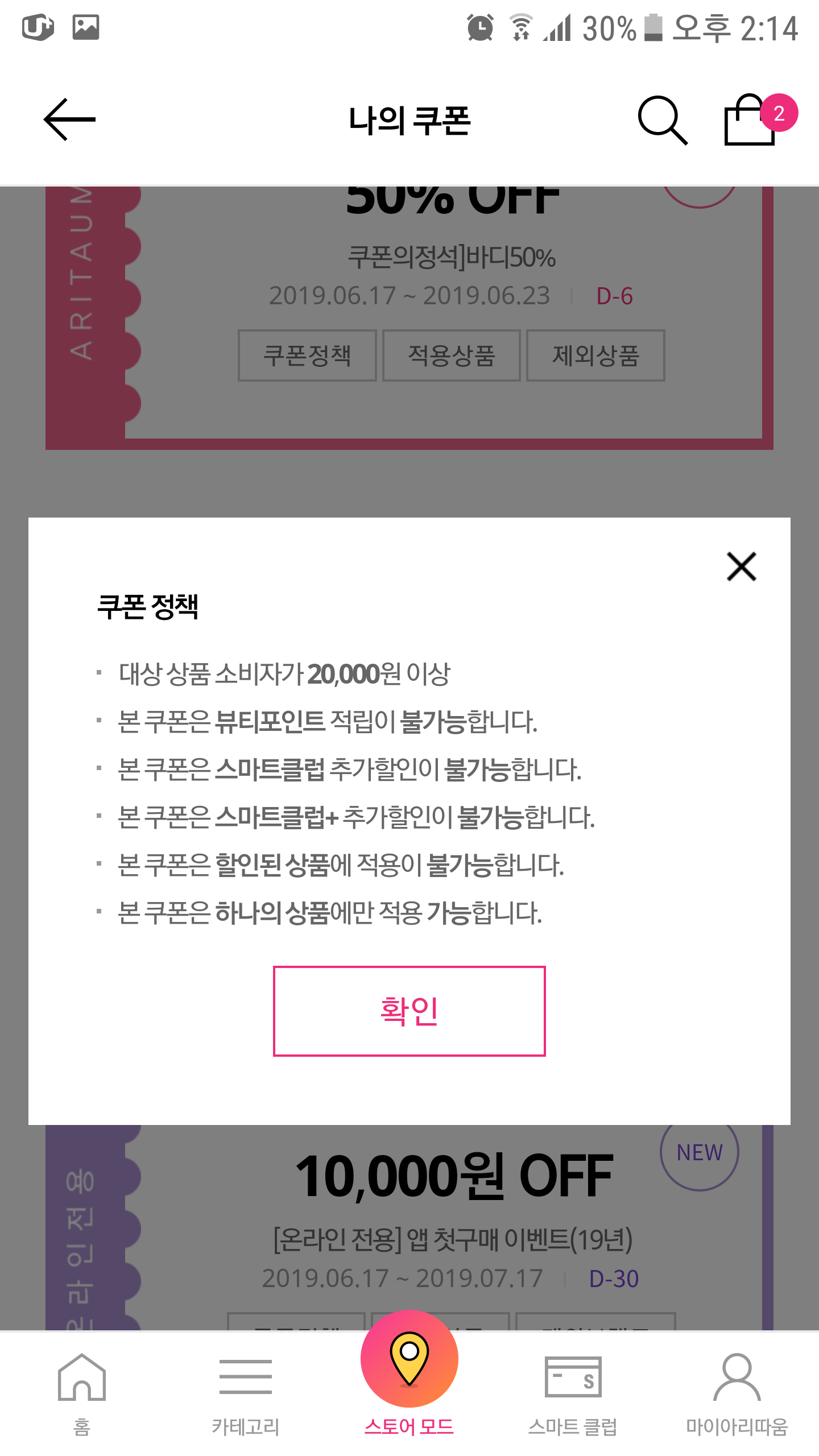 2만이상시1만원쿠폰 쓰기 힘들더라구요. 자체할인이랑 지금 행사가 많아서..적용시 어려움이 많아요