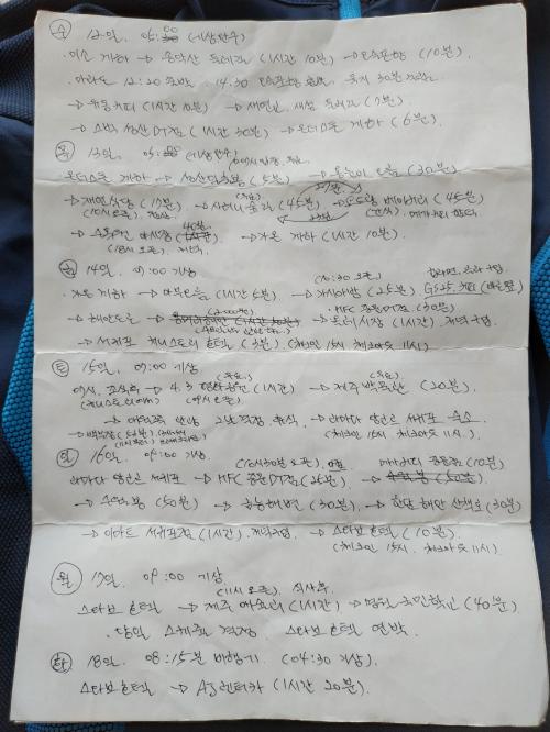 날짜별로 다 메모해놨으니 집에가서 따로 정리해서