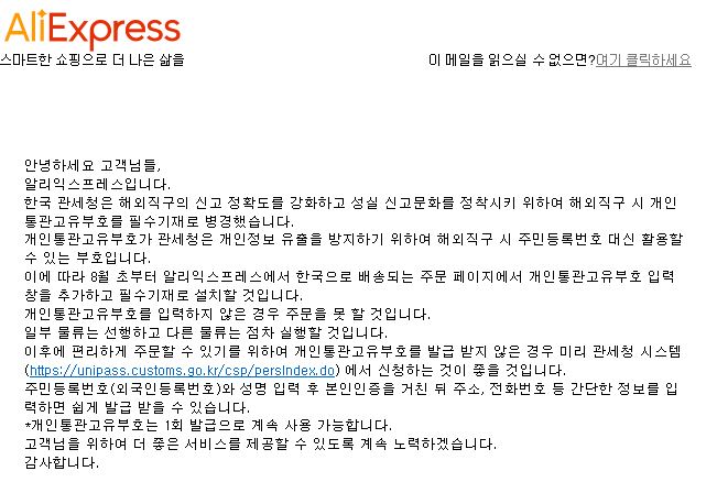 알리익스프레스 구매 시 개인통관고유부호 입력 하나봅니다..