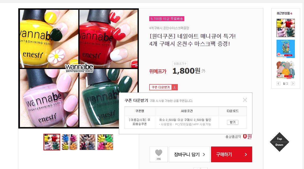 하나는 결제하셨나요? 전한개라..ㅜ 하나인데도 적용쿠폰이 안떠서 금액을 잘못안줄 혹시 모르니 로그아웃했다가 다시해보세요..성공하시길 | ||