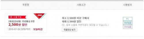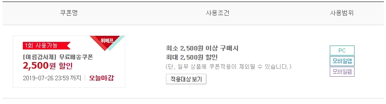 1. 위메프 2,500원이상 [2,500원할인쿠폰 발행]