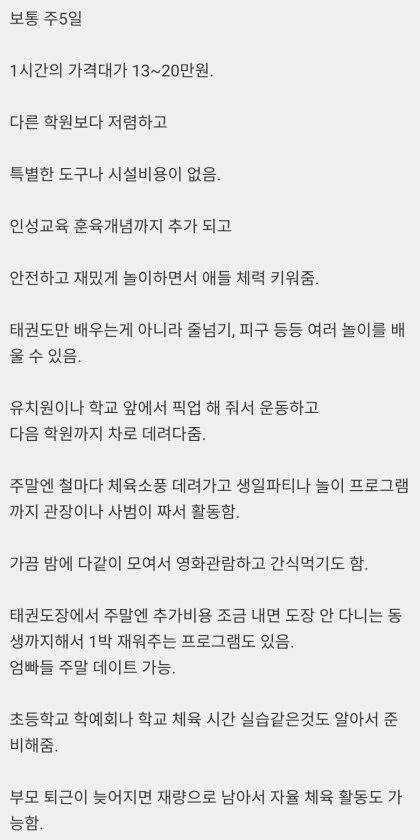 우리나라 운동학원중 유일하게 망하지 않는곳이라고 하더라구요 ㅋㅋㅋ |