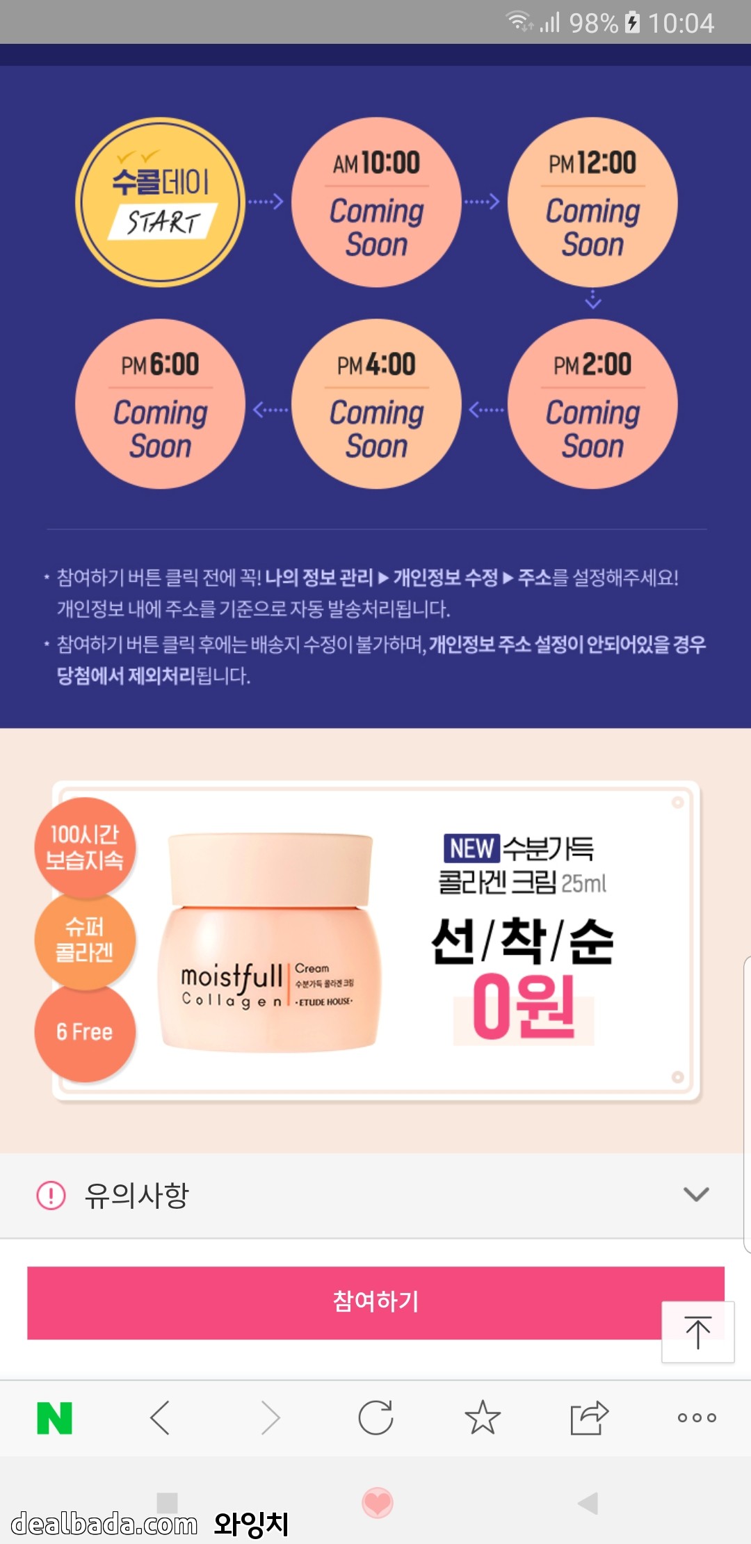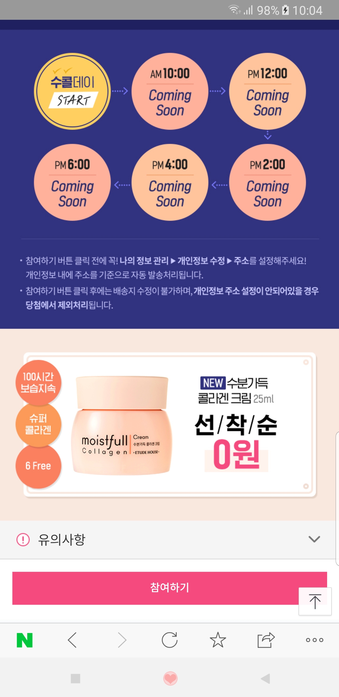 2시간마다 하는데 전 10시 딱 되자마자 눌렀는데 마감됐다고 나왔어요.