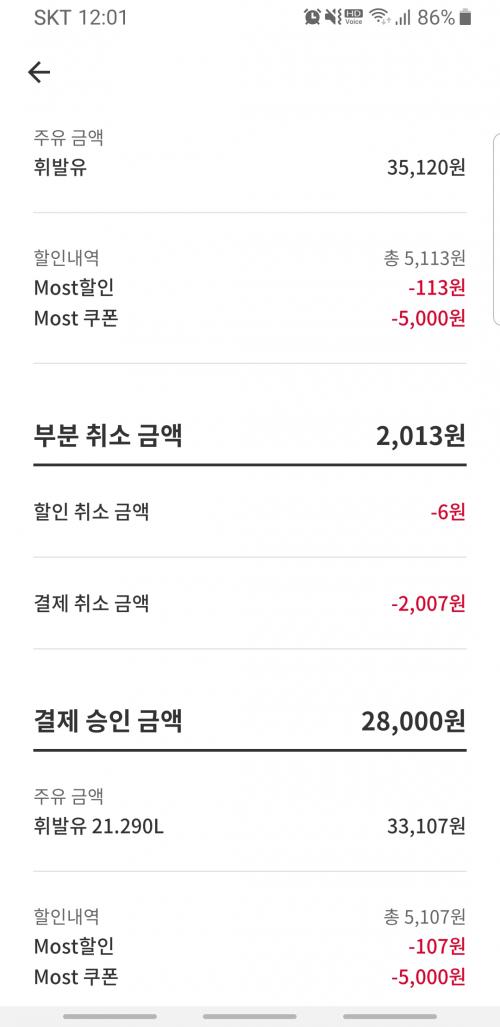 저도 어제 주유햇는데 결제금액보다 적게 들어가서 - 2300원 정도 부분 취소되었더군요