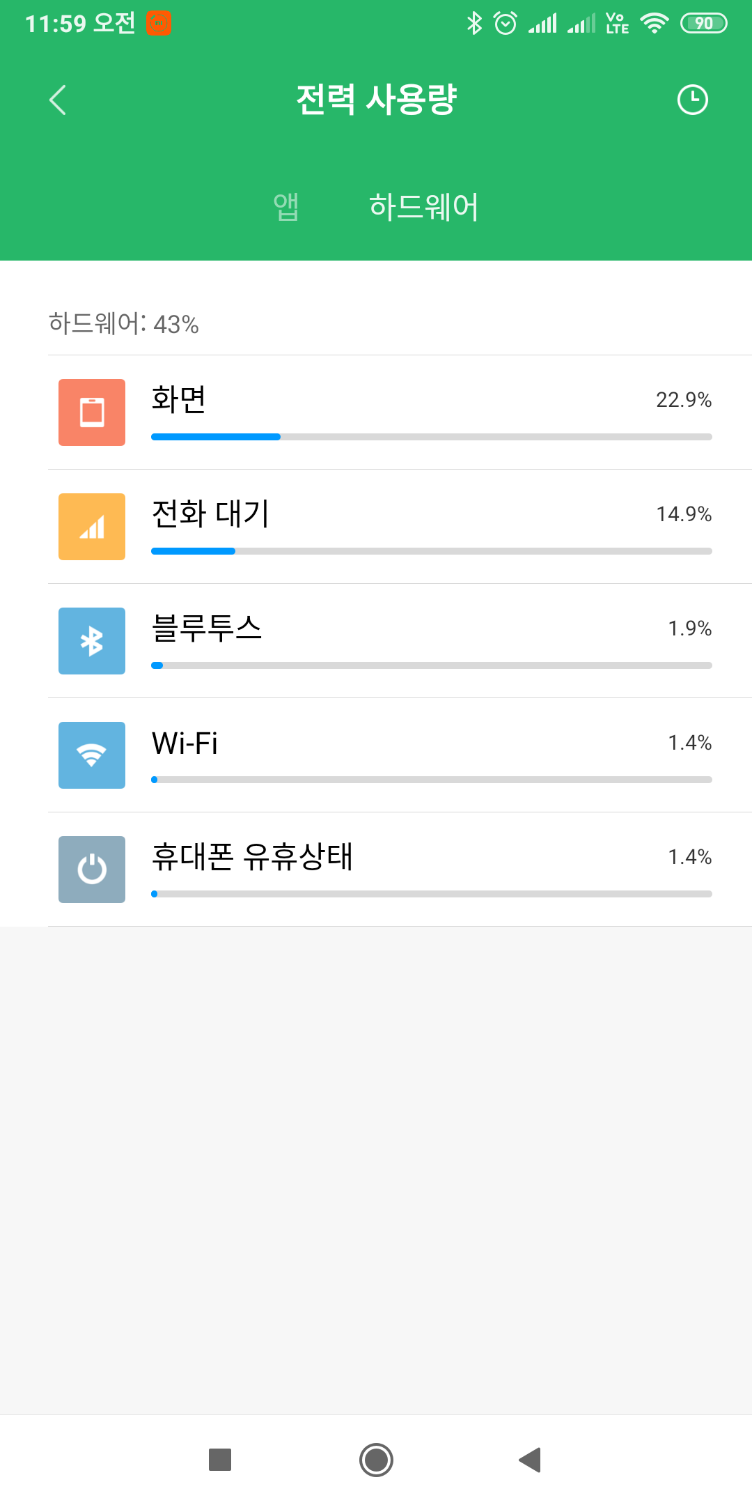 요새 배터리가 빨리 줄어들어서 확인해보니