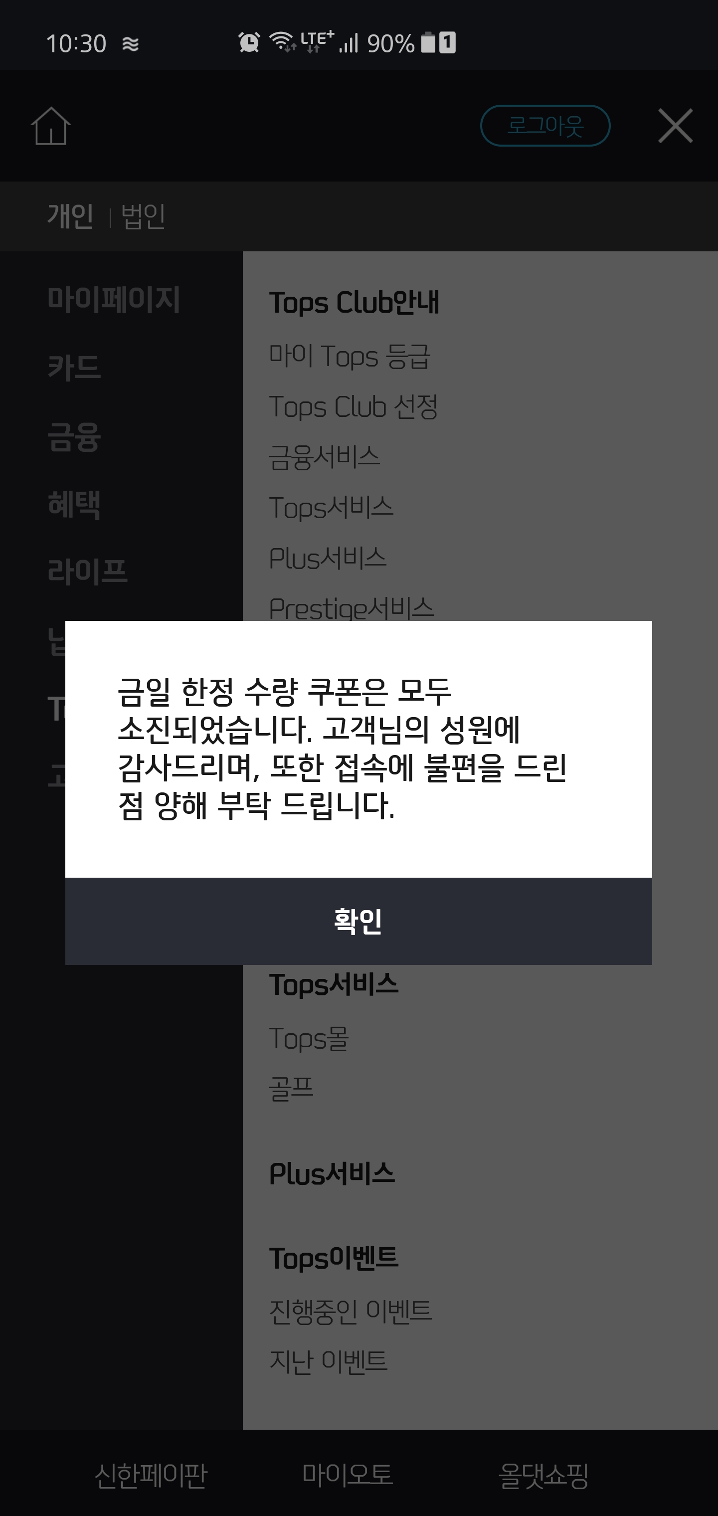 신한탑스 쿠폰 다들 열심히 받으시나요?