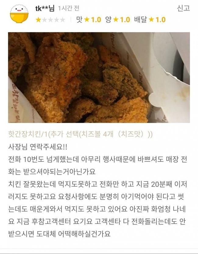 근데 사진이 아무리봐도 핫간장치킨이 아닌것처럼 보입니다. |