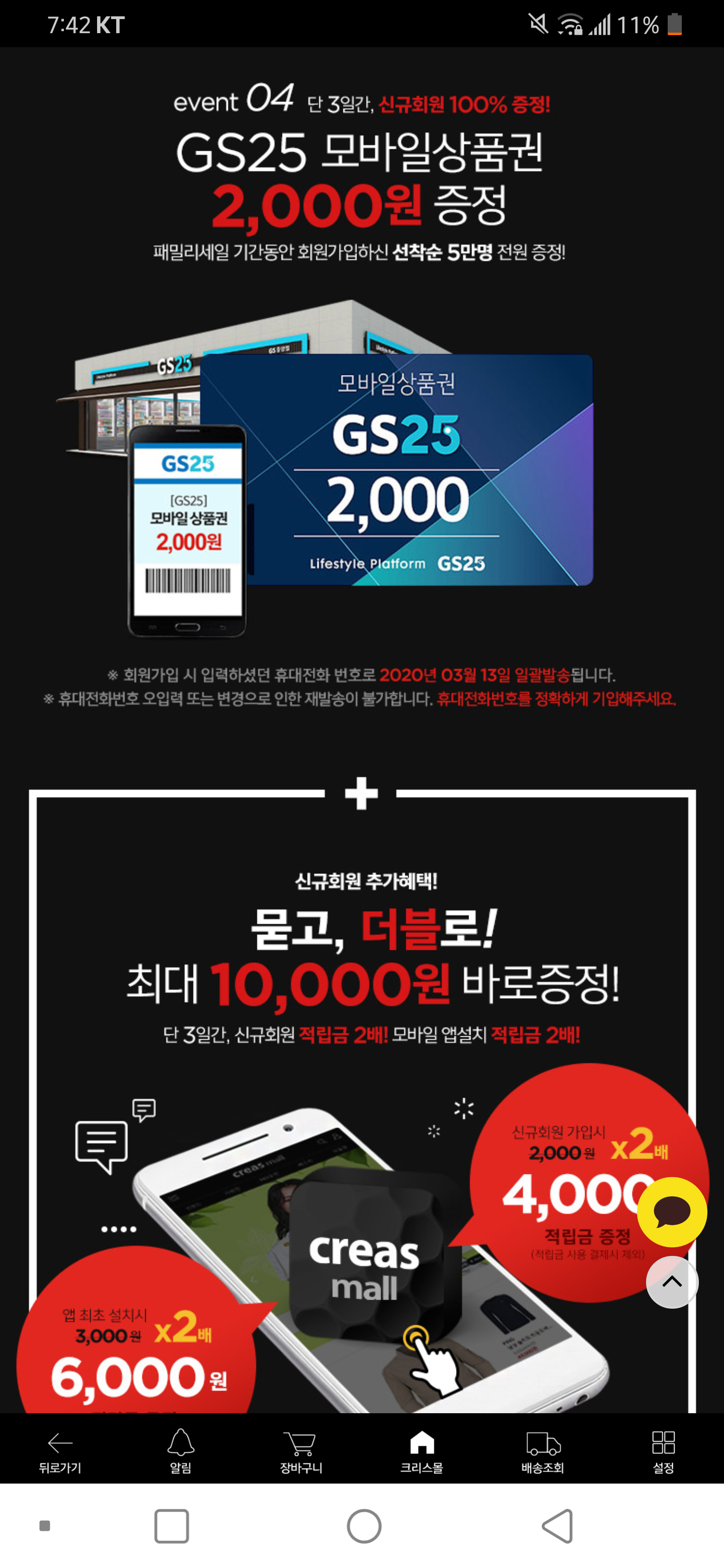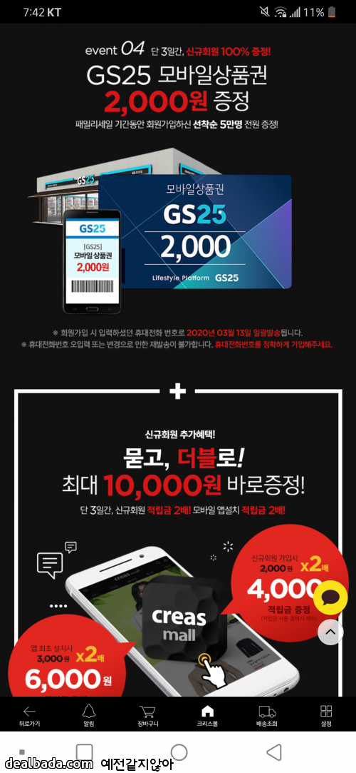 오늘까지 회원가입자 전원 Gs상품권 2000원 이에요.