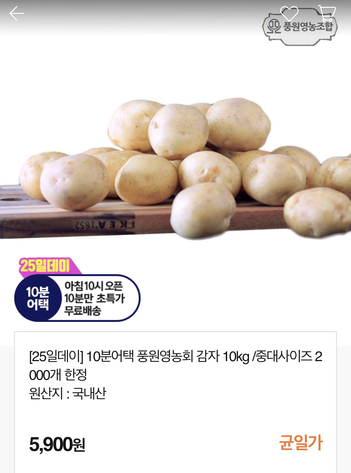 감자 10kg 5000원 딜 놓친 분들은 이것도 괜찮겠네요