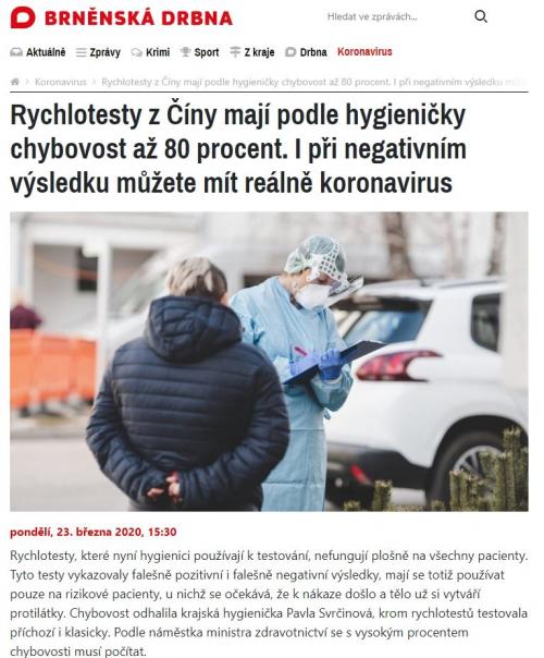 체코 정부가 중국에 코로나 검사용 키트 15만개를 들여왔는데,