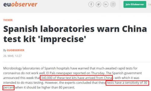 스페인에서 여태 한국 검사자수와 거의 맞먹는 34만개를 중국에서 구입!