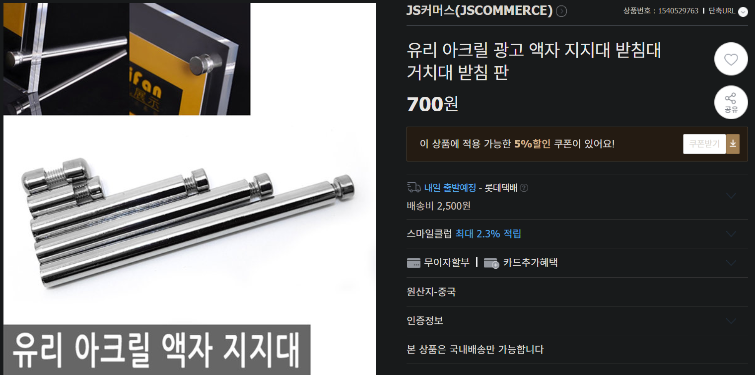 지지대만 따로 파는 페이지를 도저히 못찾겠습니다 ㅠㅠ