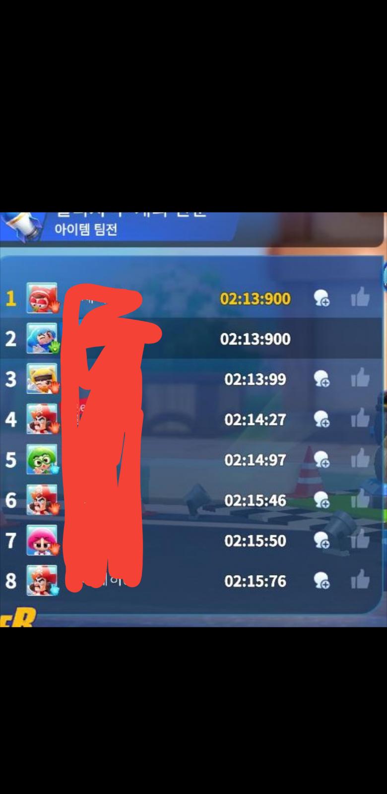 엇 저  마침 어제 밤에 같은 기록으로 들어와서 신기해서 캡쳐했었어요 ㅎㅎ  근데 무슨기준인지 제가 2등으로 찍혔어요 ㅠㅠ