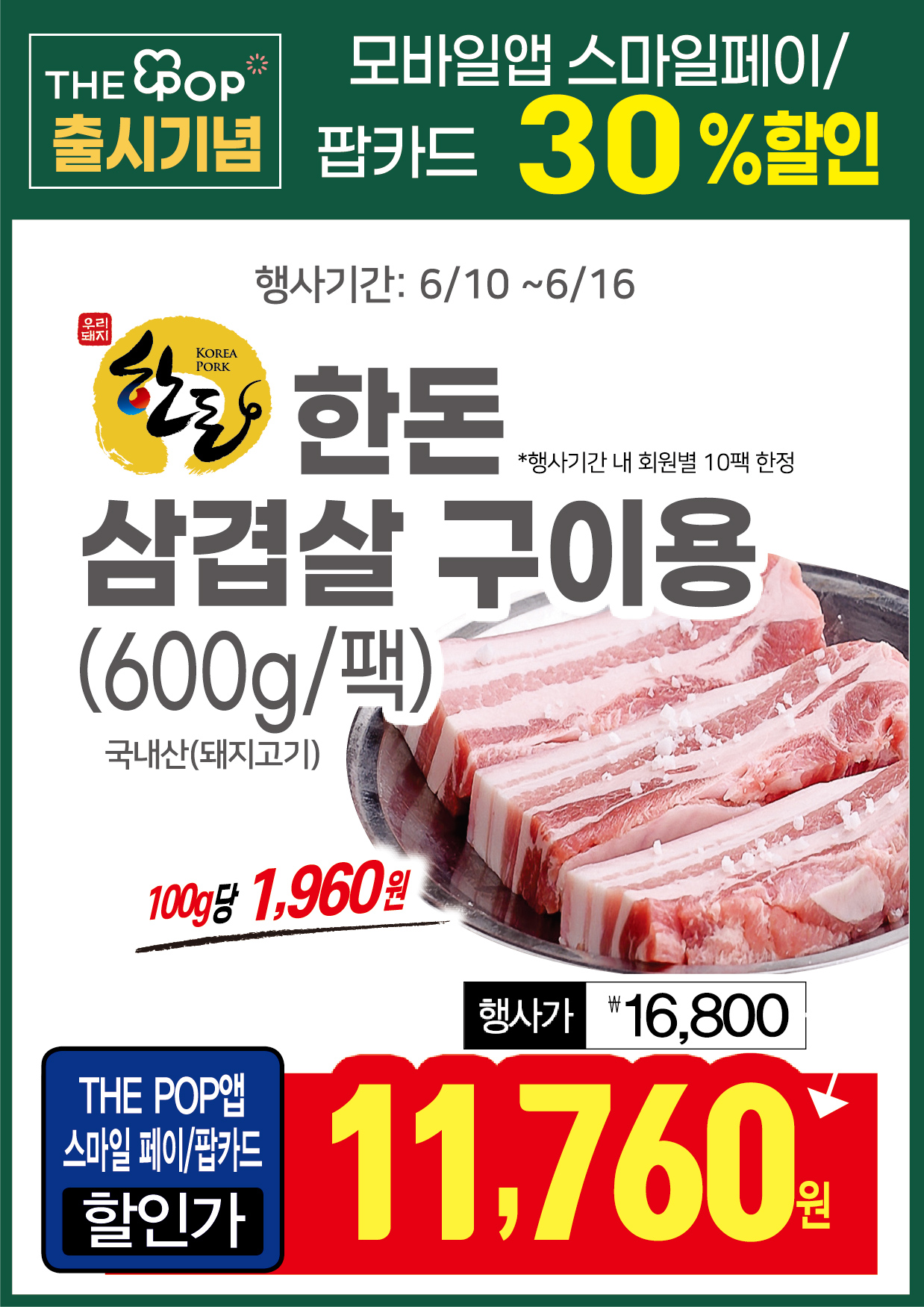 저희동네 삼겹살 1근 기준으로 16,000~18,000원요.