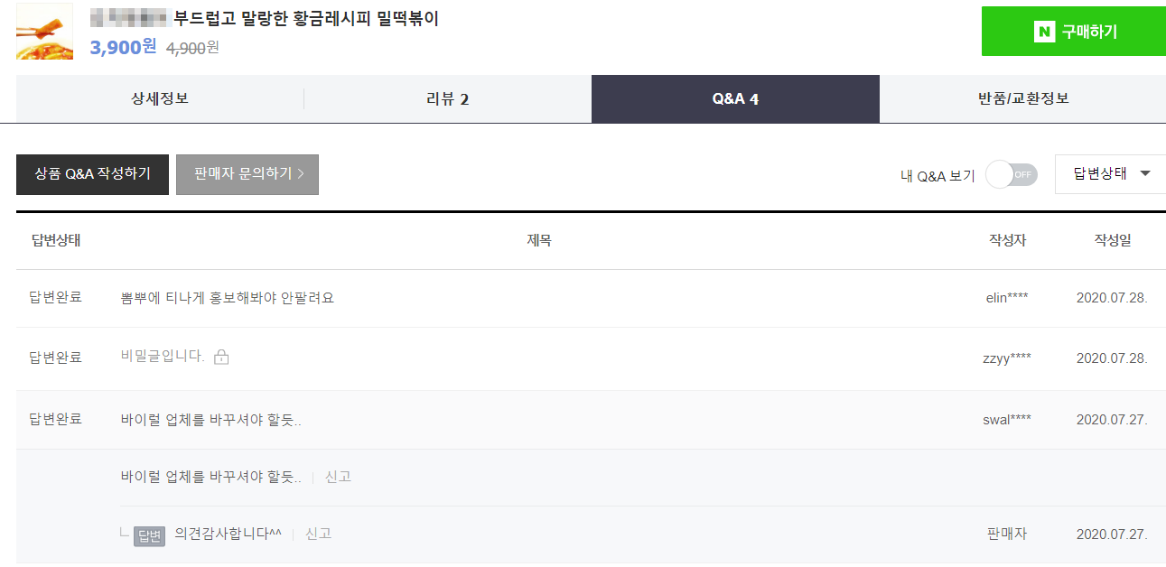 리뷰2에 문의4중 두개가 바이럴 얘기