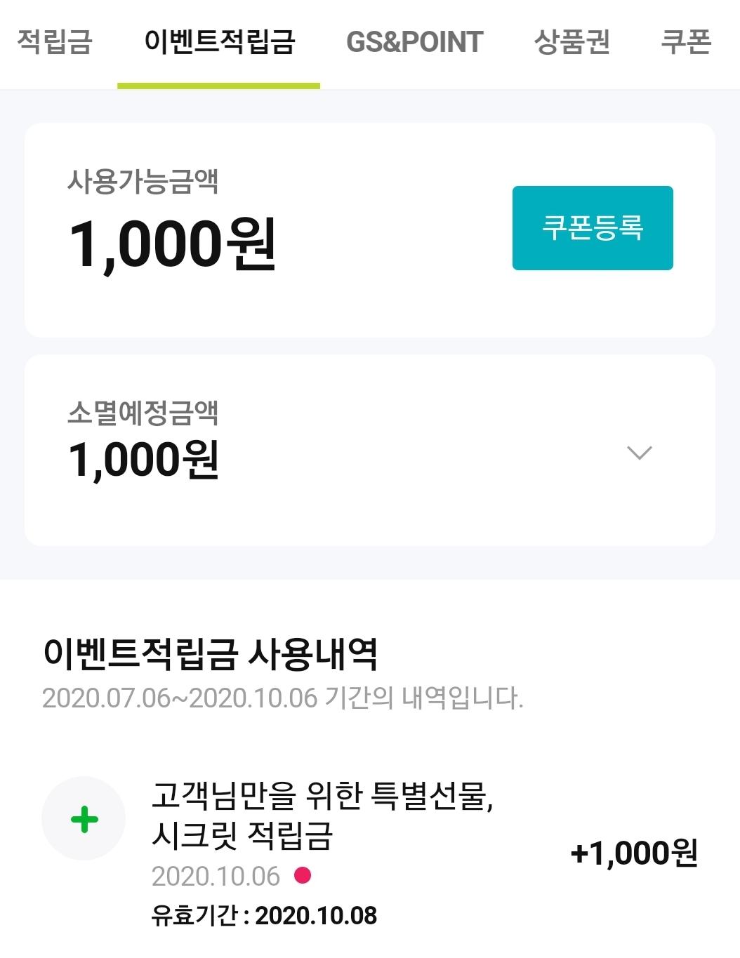 Gs샵 적립금 들어왔어요