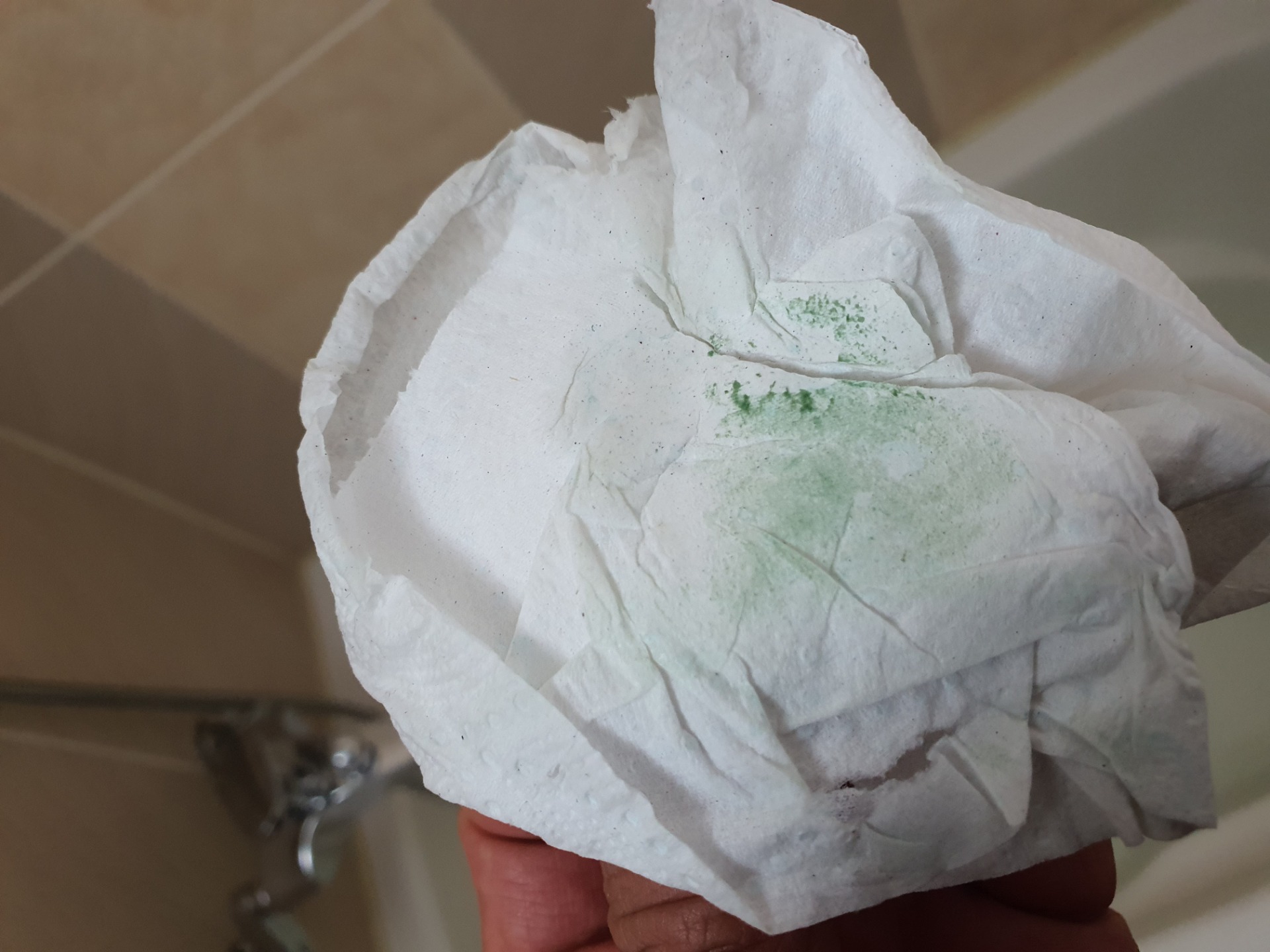 혹시나해서 휴지로 닦아보니 파랗게 뭍어납니다.
