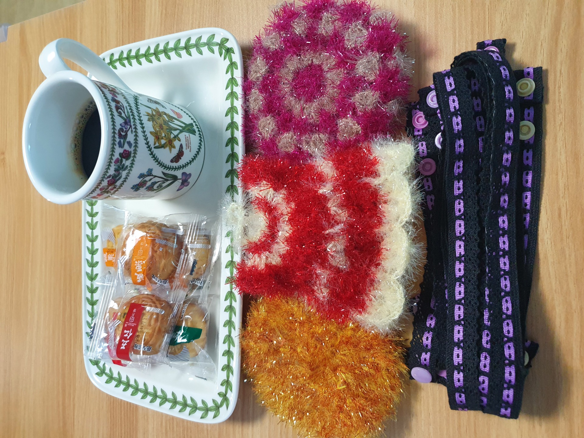 마스크줄과 수세미 부탁드렸는데 몇개를 더 주신건쥐ㅠㅠ 혜자 선물에 어찌해야할지 모르겠네요...