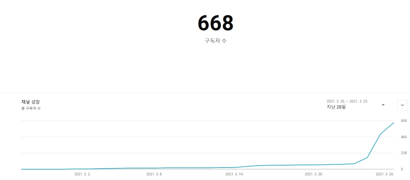 지지부진하다가 구독자 한 번 점프하고 뒤에 또 점프하고 그런 식으로 상승했습니다