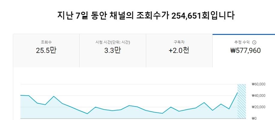 수익은 정확한 공식은 없지만 대략적으로 조회수*2+@ 정도로 생각하면 될 것 같습니다