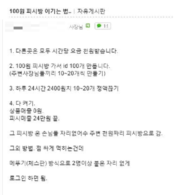 대단하네요 요즘 피시방 장사가 잘 안되니.. |