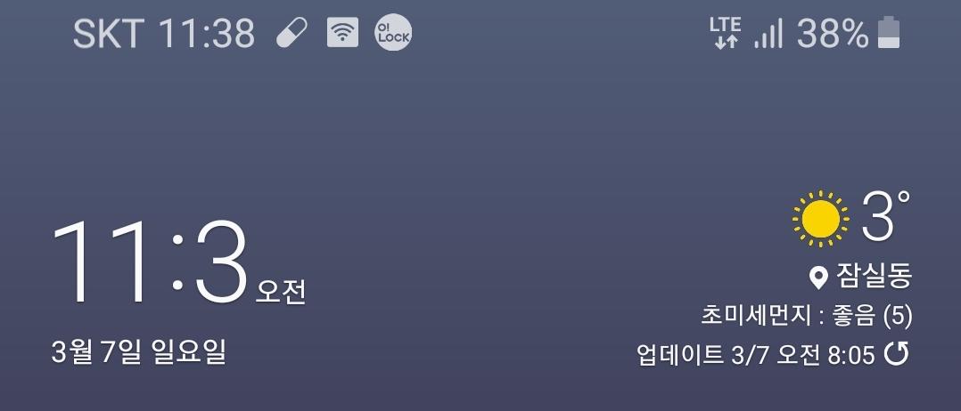 3) 11시 38분에 배터리가 38.
