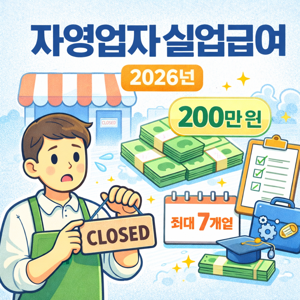 2026년 자영업자 고용보험 실업급여는 폐업 등 비자발적 사유로 소득이 끊긴 자영업자에게 최대 7개월간 월 109만~202만 원을 지급하는 제도입니다. 50인 미만 사업주까지 가입이 가능하며, 실업급여 외에 직업훈련비·장려금(월 최대 30만 원)도 지원됩니다. 신청은 근로복지공단 토탈서비스에서 온라인으로 가능하며, 폐업사실증명원·매출감소 증빙 등 서류 제출이 필요합니다. 단, 자진폐업·세금체납 시 수급이 불가하며, 재창업 시 지급이 중단됩니다.