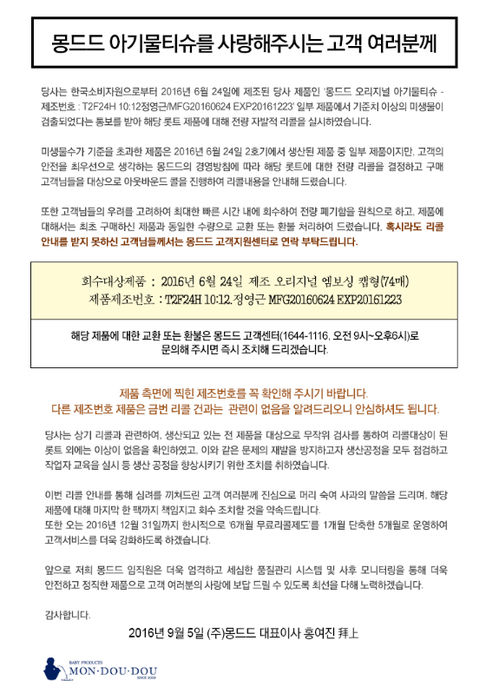 몽드드 기간 지나면 무료로 교환해주기도 해서 좋은 줄 알았는데.. 울조카 ㅜㅜ |
