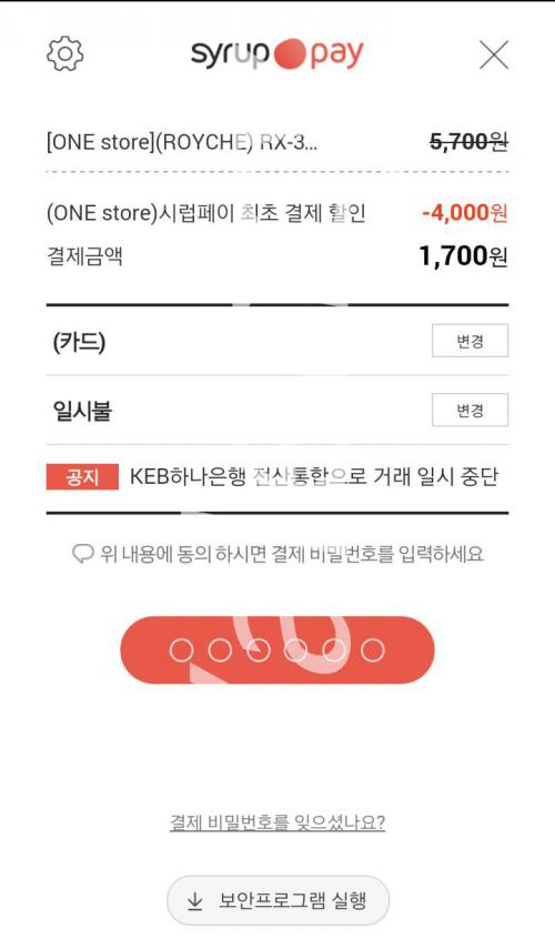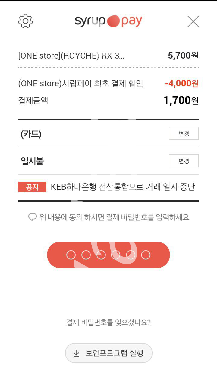 추가로 시럽페이 결제시 4천원이 추가로 할인되어서...