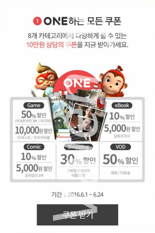 원스토어 메인에 보시면 할인쿠폰 증정 행사가 있는데요,