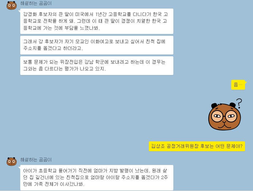 이낙연총리후보자와 강경화장관후보자, 김상조위원장후보자의 위장전입에 대해