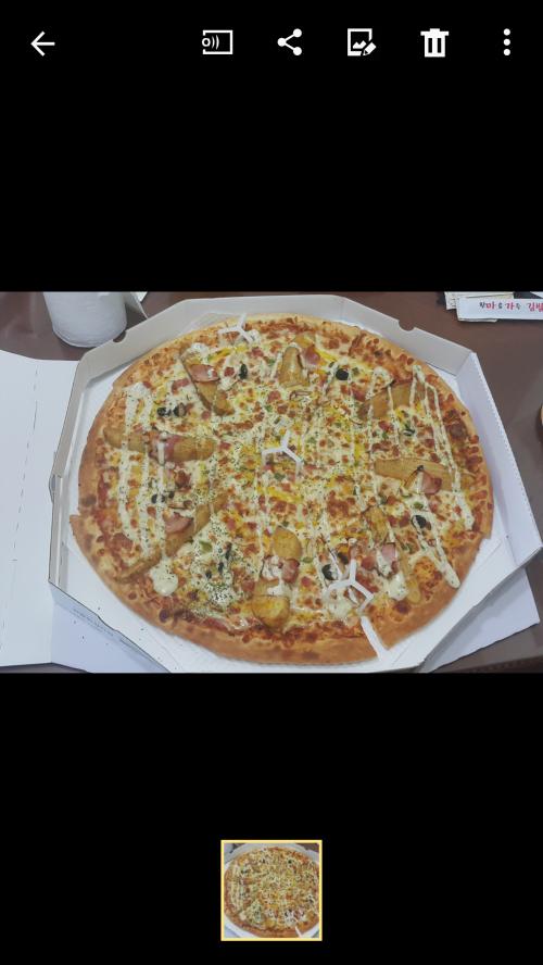 저도 저거 먹어봤는데 크긴 크더라구요.. 3조각먹고 gg치고 또 뎁혀먹고 그랬는데 갓해온 따끈한 피자를 더 좋아하는지라 이젠 안먹는다는..