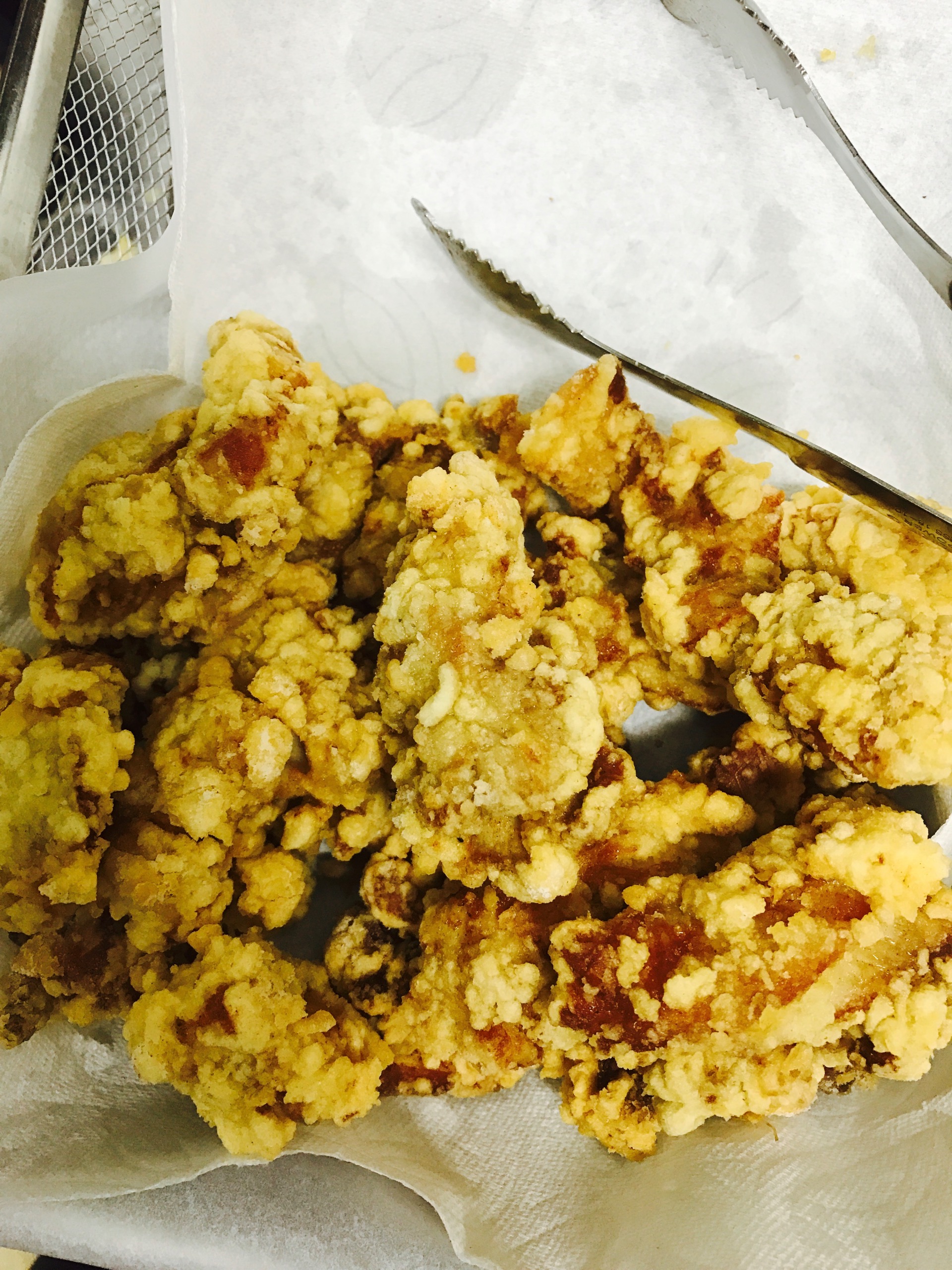 튀김은 튀김가루로 하고, 가라아게는 전분가루로요.