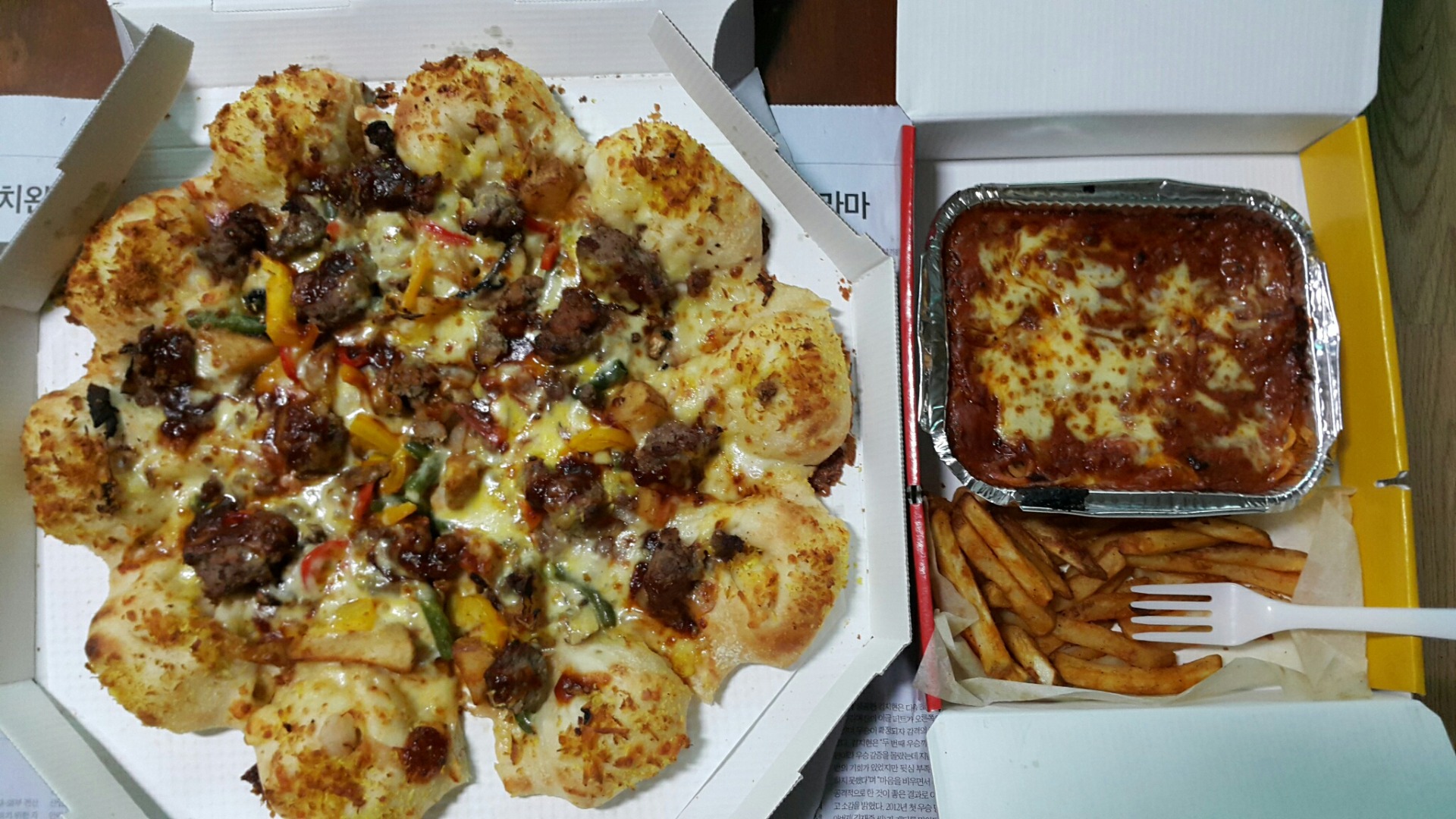 진ㅇ짜 명절 때 먹는 산적이 피자 위에 감자 튀김과 함께 올려져 있어서 기겁을 했던 기억이 ㅠㅠ