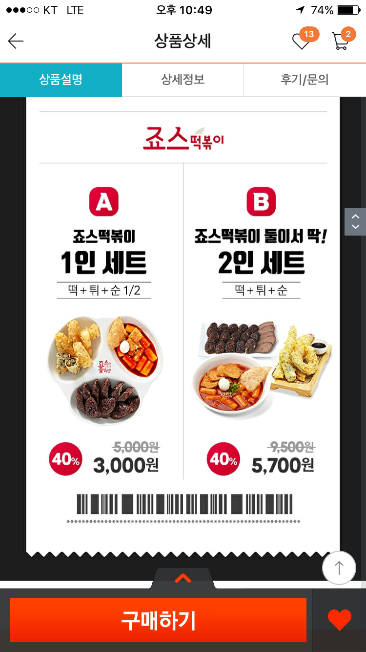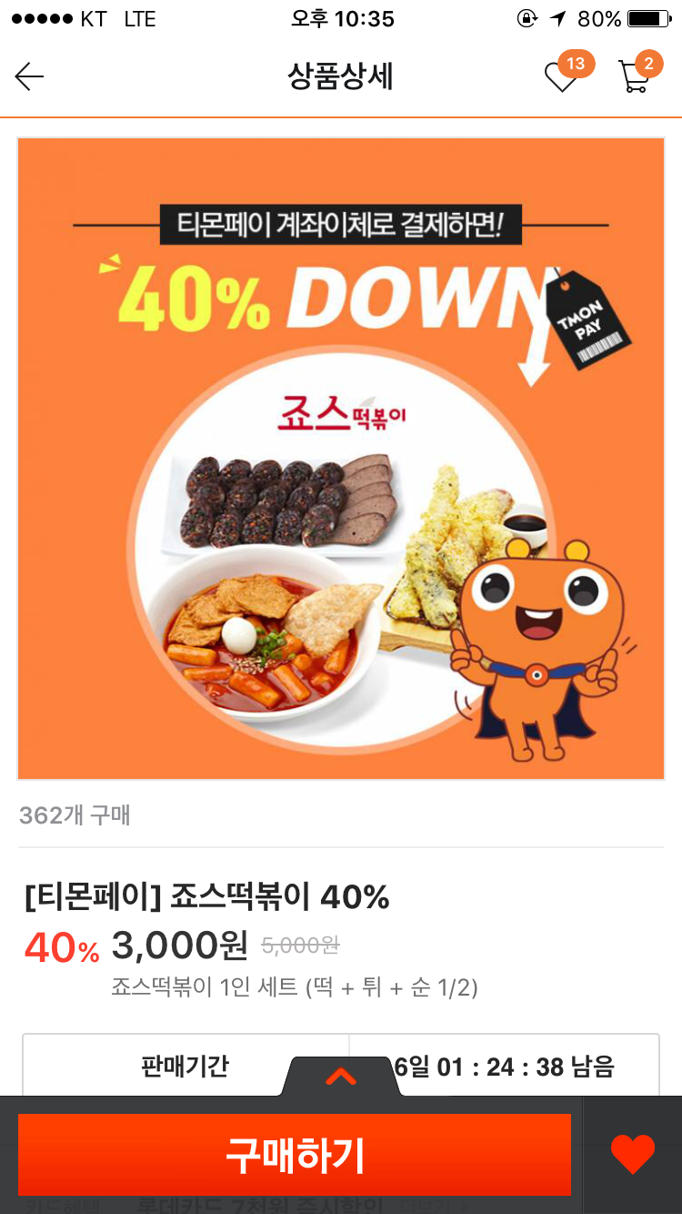 티몬페이전용 죠스떡볶이 딜 떠있네요.
