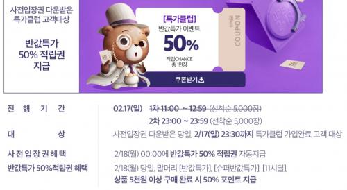 아 위메프도 특가클럽 50%적립권 행사하던데 받아놓으셔요 ㅋ