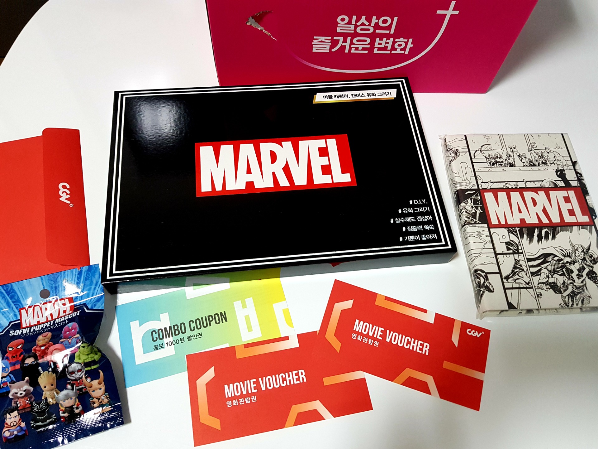 마블유화그리기, 마블노트, 마블피규어, cgv 2장.