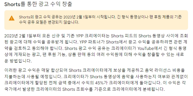 내년 2월 1일부터 쇼츠 수익이 생기나봅니다