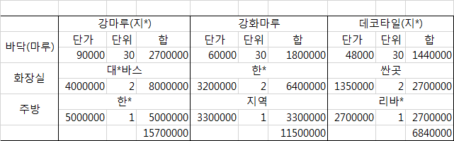 기본 공사 했을때는 을지로가 그나마 저렴했습니다