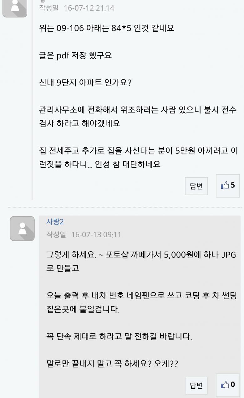 원래글은 단지내 주차스티커 추가 5만원내고 만들기 싫으니,  일러스트 잘하는 사람한테 만들어달라고 요청하는글(불법)