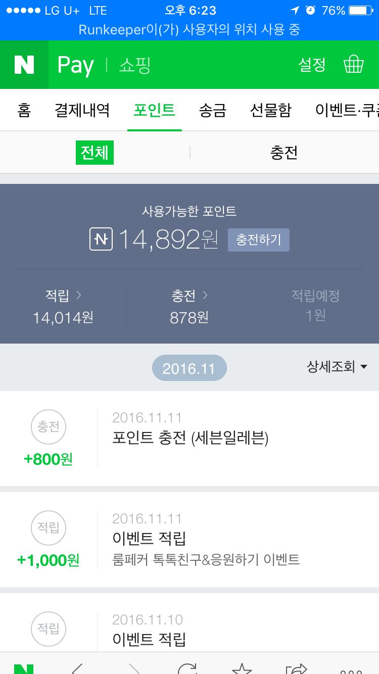 퇴근길에 집앞 세븐들려서 naver pay 잔돈충전하고왔네요
