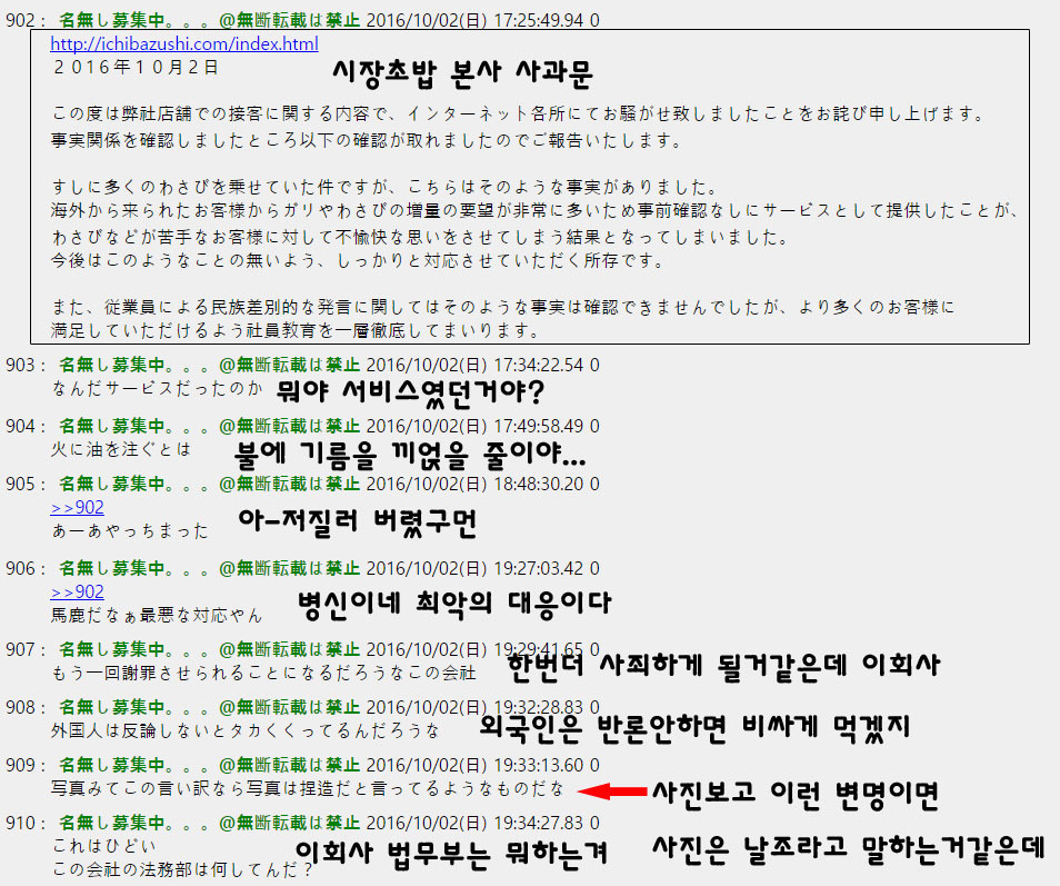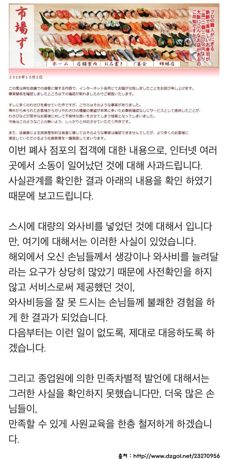 오사카 시장초밥 사장 사과문 올라왔다네요 > 자유게시판