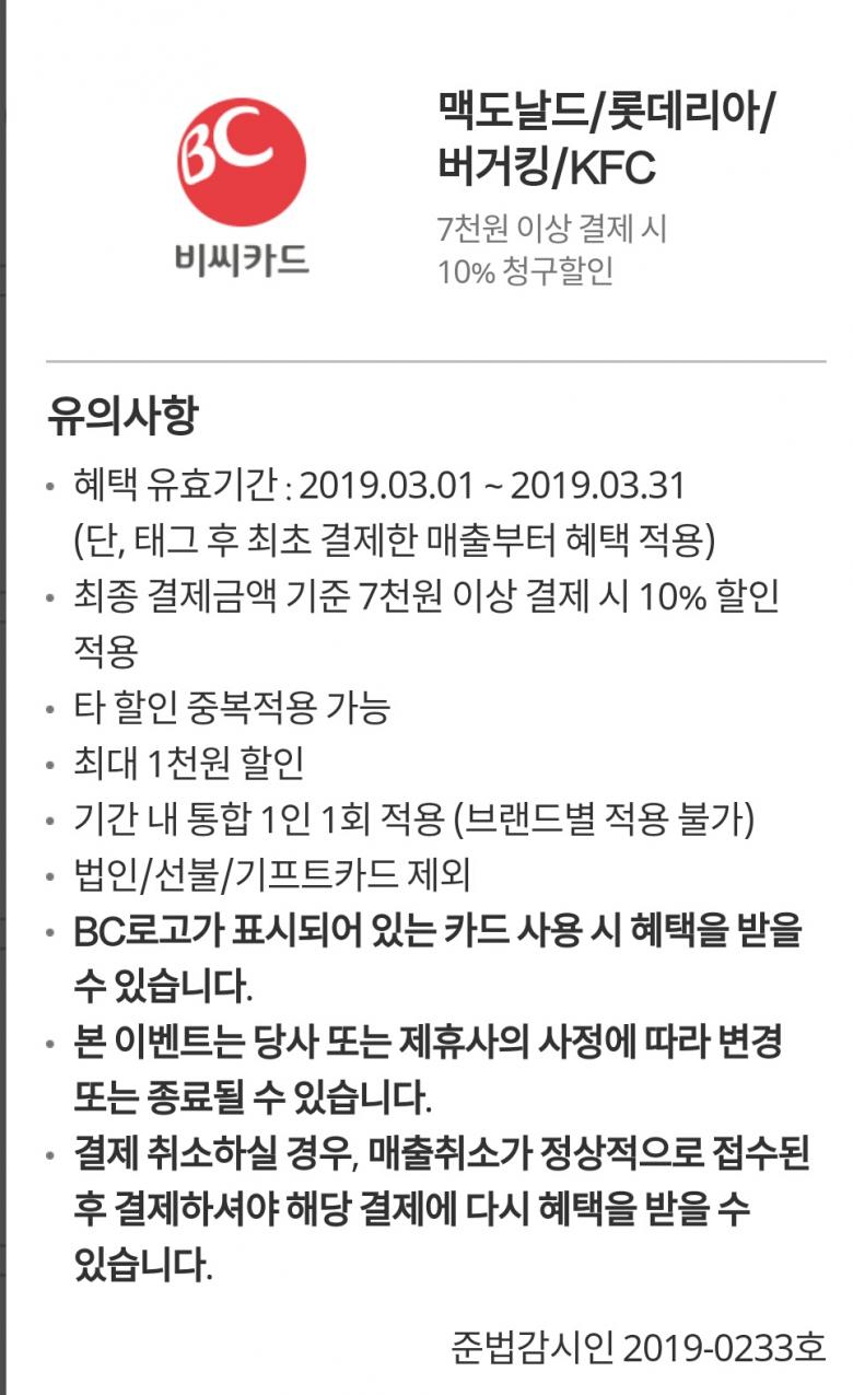 아무 BC 카드 써도 태그한 거 혜택 받는 건지요?