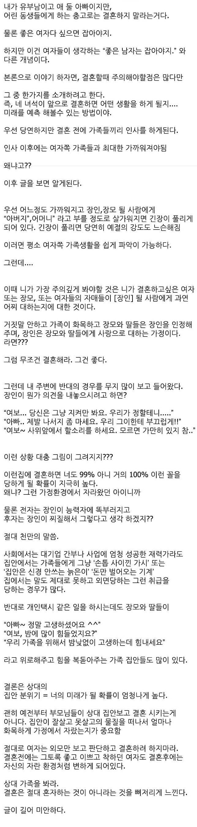 상대 가족을 봐라....전 여자이지만 진짜 완전 공감입니다 ㅡ..ㅠ 하아ㅏ.....