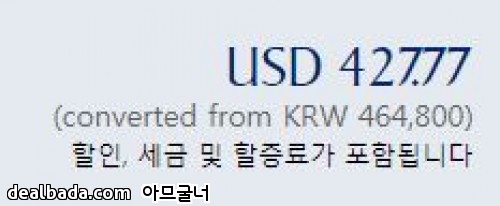 달러로 하면 427달러 인데 이게 현재 환율 기준 487,871 정도 됩니다. 원화보다 2만원이 넘게 비싸요