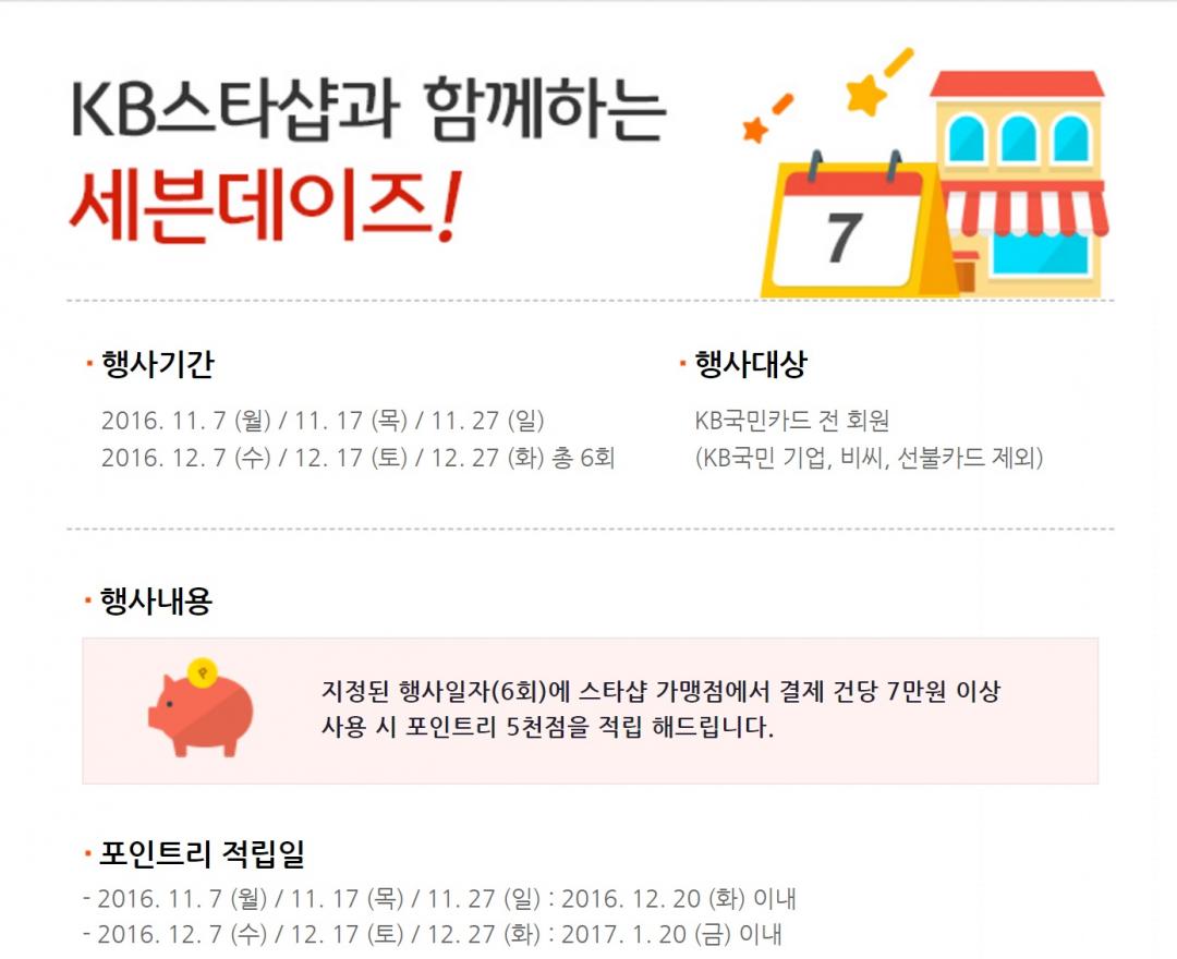 오늘은 17일, KB카드 스타샵 세븐 데이즈