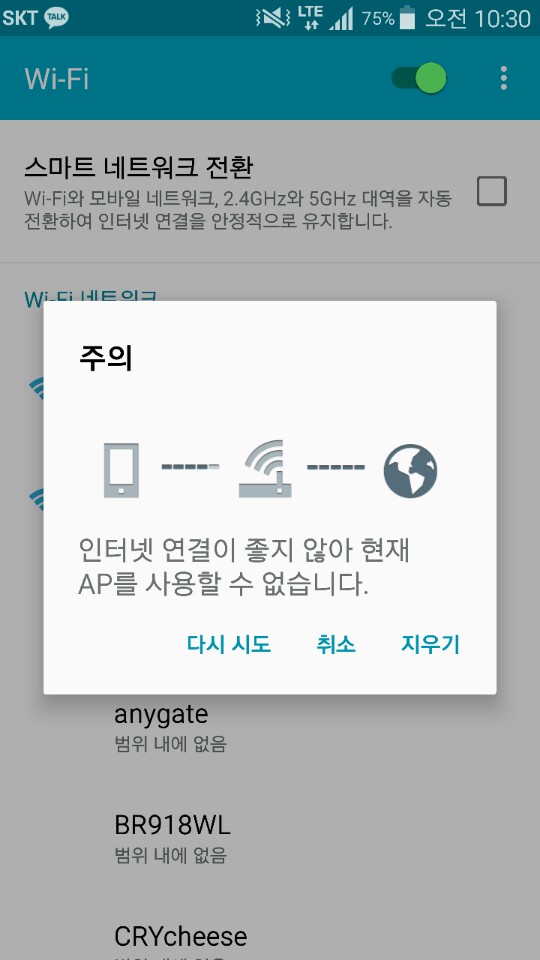 와이파이는 터질때는 잘 터지는데 안될때는 ip주소를 못받아 오는 현상이 자주 발생합니다.