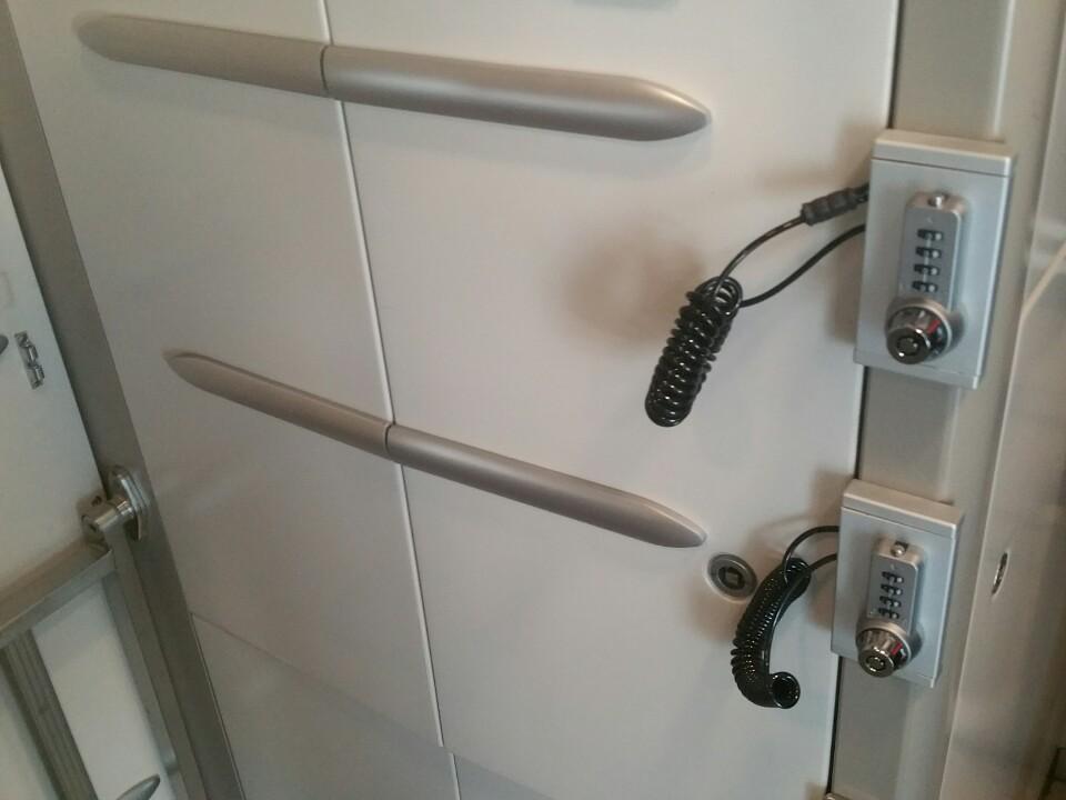 객차사이에 케리어 같은걸 보관할수 있게 잠금장치가 있고 본인이 비밀번호 조작할수 있습니다